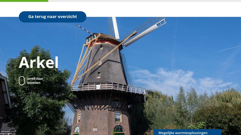 In Arkel zijn verschillende manieren om woningen en andere gebouwen zonder aardgas te verwarmen. Dat kan voor het hele dorp, per buurt of straat of per woning. De gemeente Molenlanden kijkt graag samen met jou en jouw dorp welke oplossing het beste past.