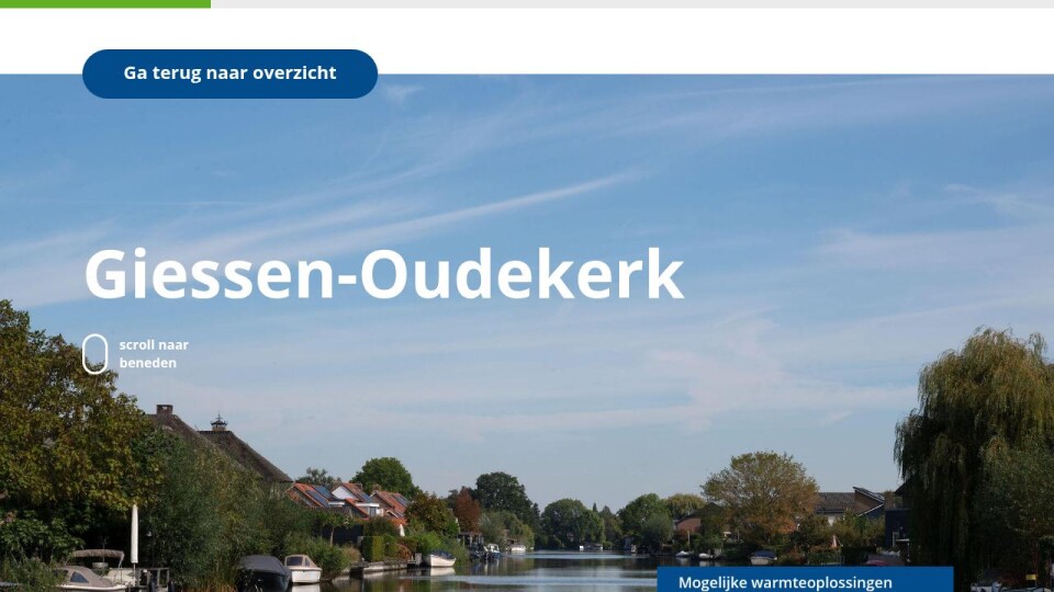 In Giessen-Oudekerk zijn verschillende manieren om woningen en andere gebouwen zonder aardgas te verwarmen. Dat kan voor het hele dorp, per buurt of straat of per woning. De gemeente Molenlanden kijkt graag samen met jou en jouw dorp welke oplossing het beste past.