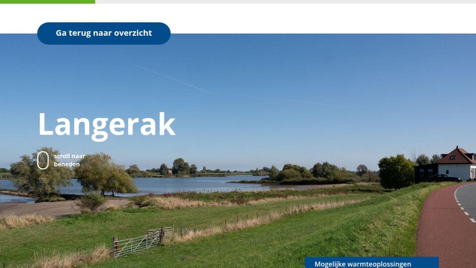 In Langerak zijn verschillende manieren om woningen en andere gebouwen zonder aardgas te verwarmen. Dat kan voor het hele dorp, per buurt of straat of per woning. De gemeente Molenlanden kijkt graag samen met jou en jouw dorp welke oplossing het beste past.